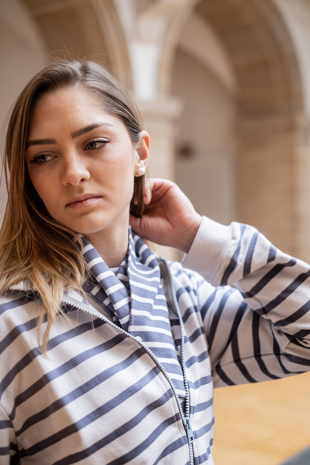 We designed our Zipped Hoodie in a beautiful striped fleece. It’s your turn to take care of it.