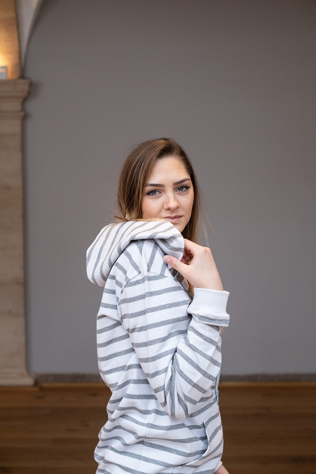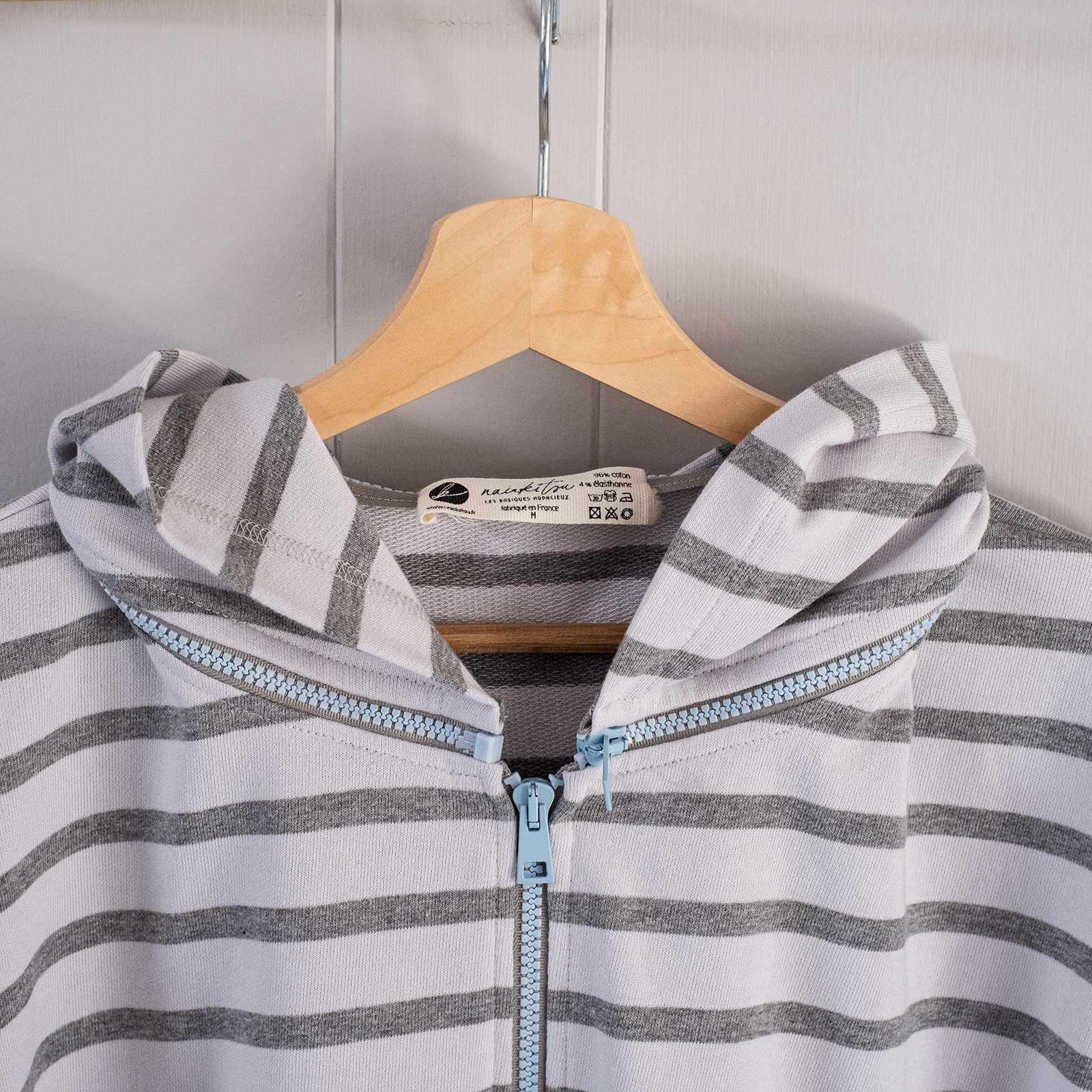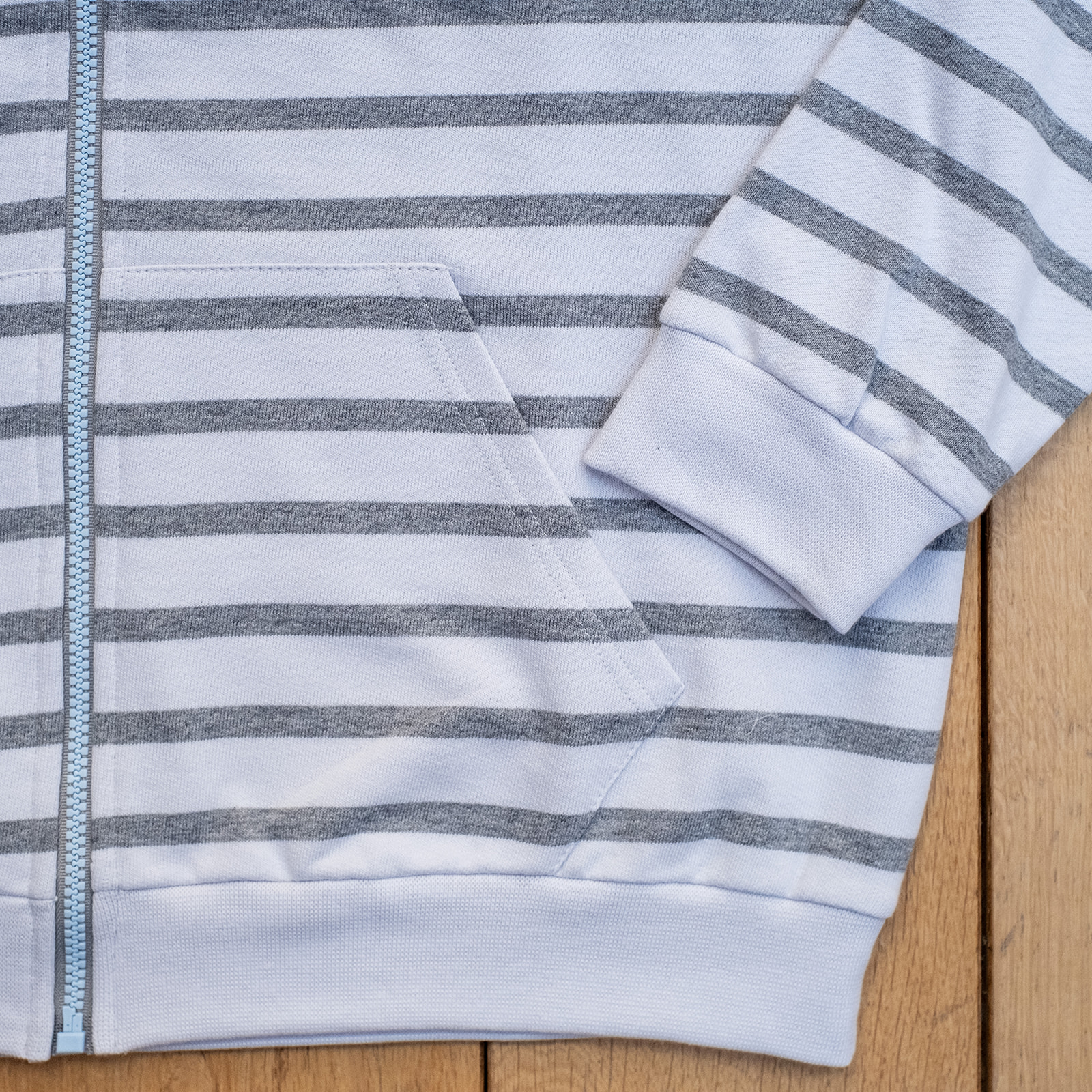 We designed our Zipped Hoodie in a beautiful striped fleece. It’s your turn to take care of it.