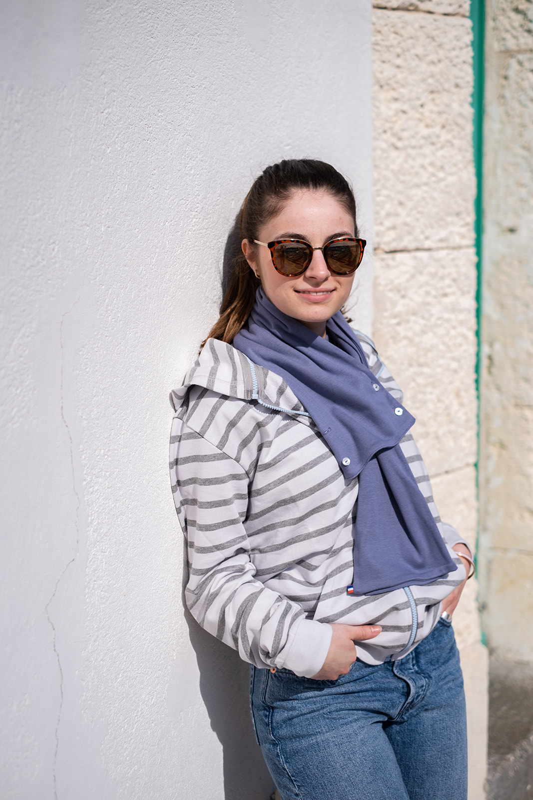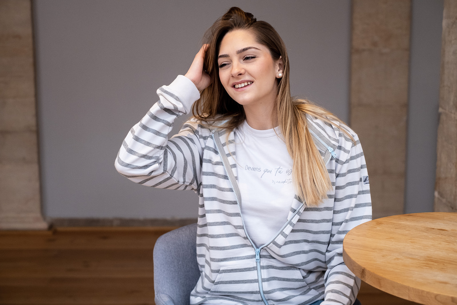 At Naiakitsu, you understand, we love quality, durability and style. This striped White – speckled grey matches perfectly with the majority of the colors of your wardrobe !