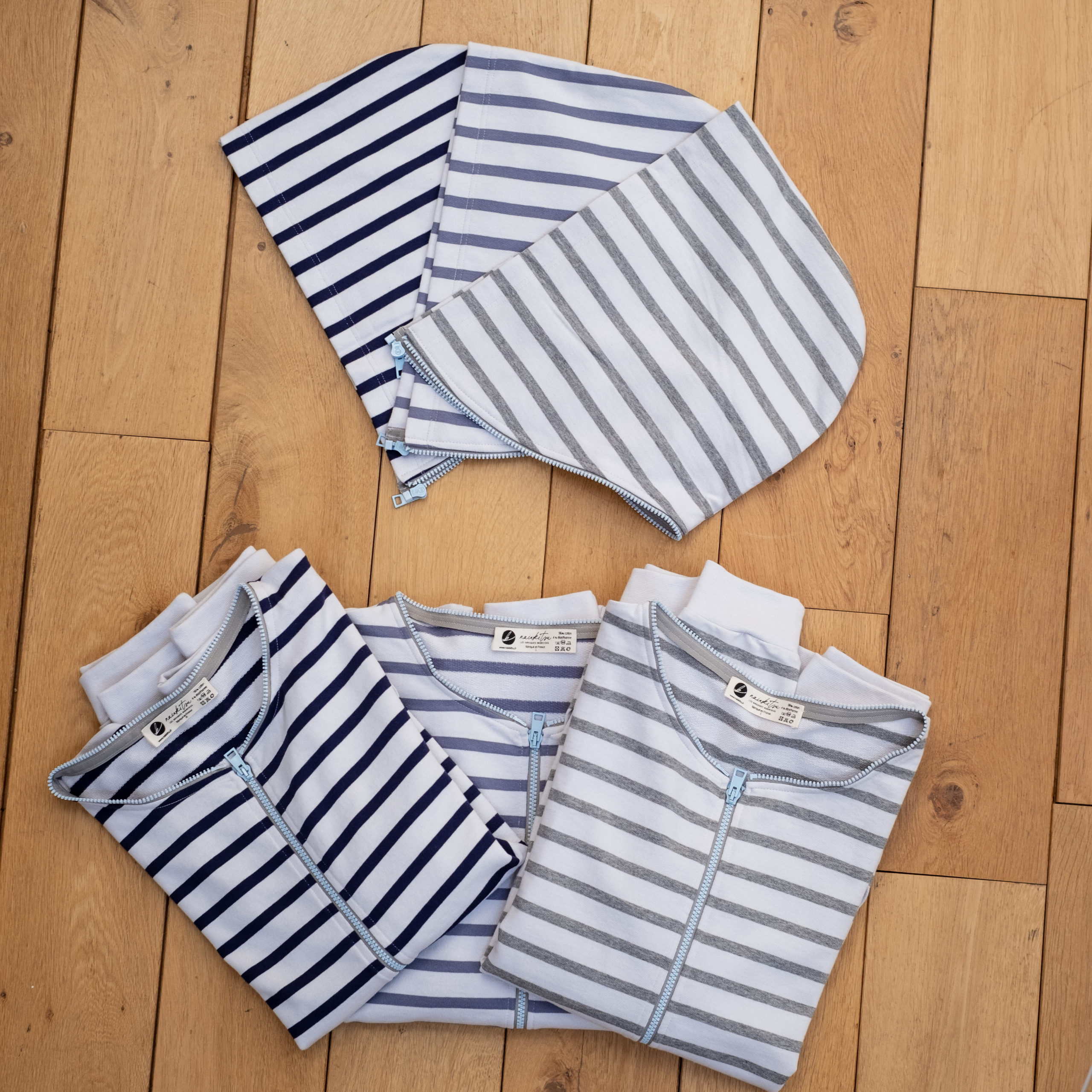 We designed our hood in a beautiful striped fleece (240 grams). It’s your turn to take care of it. For this, we advise you to wash it at 30°c and dry it flat.