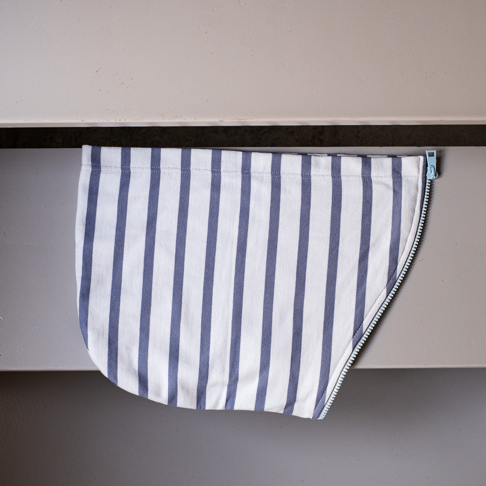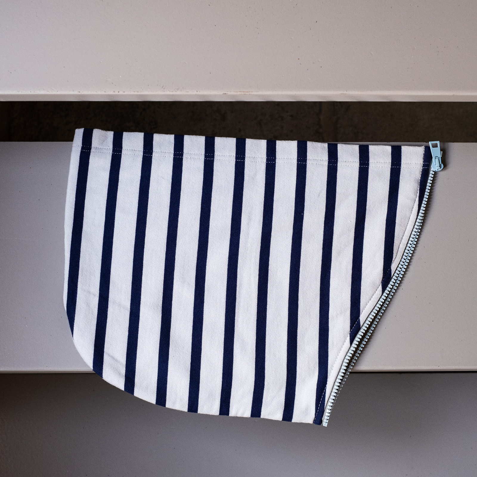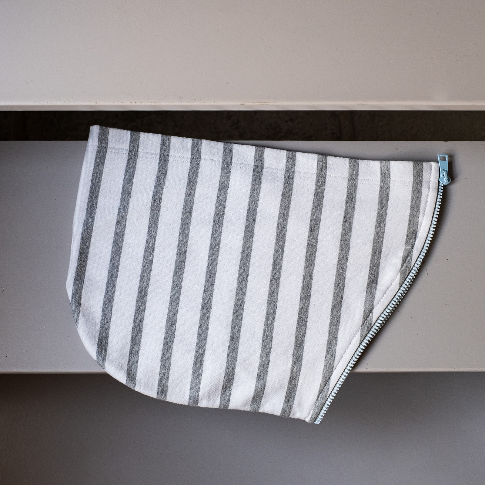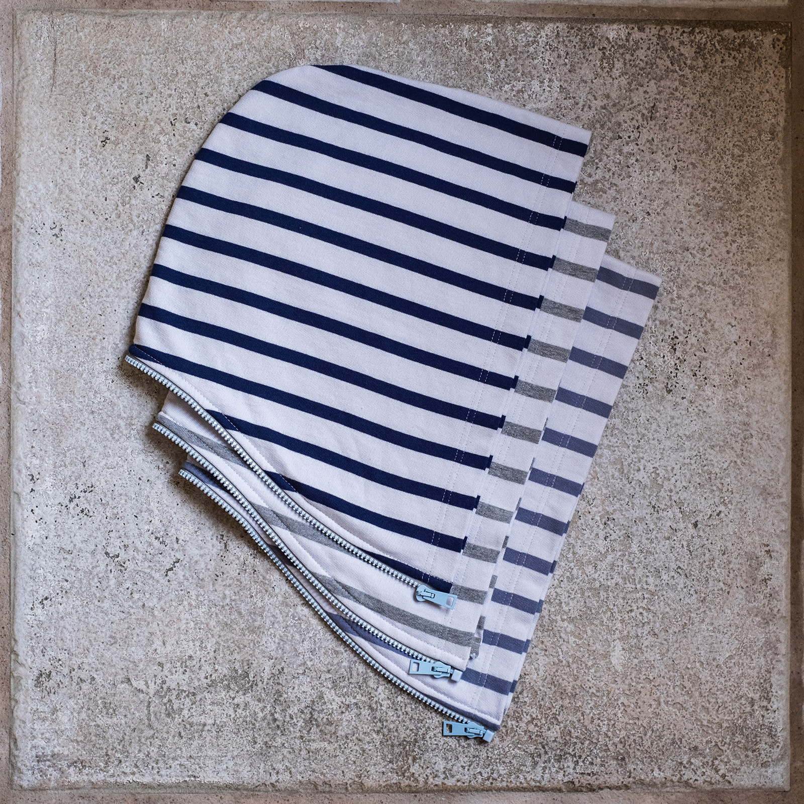 Nos capuches en molleton rayé léger se zippent grâce à ses fermetures à glissières sur l’encolure du sweat.