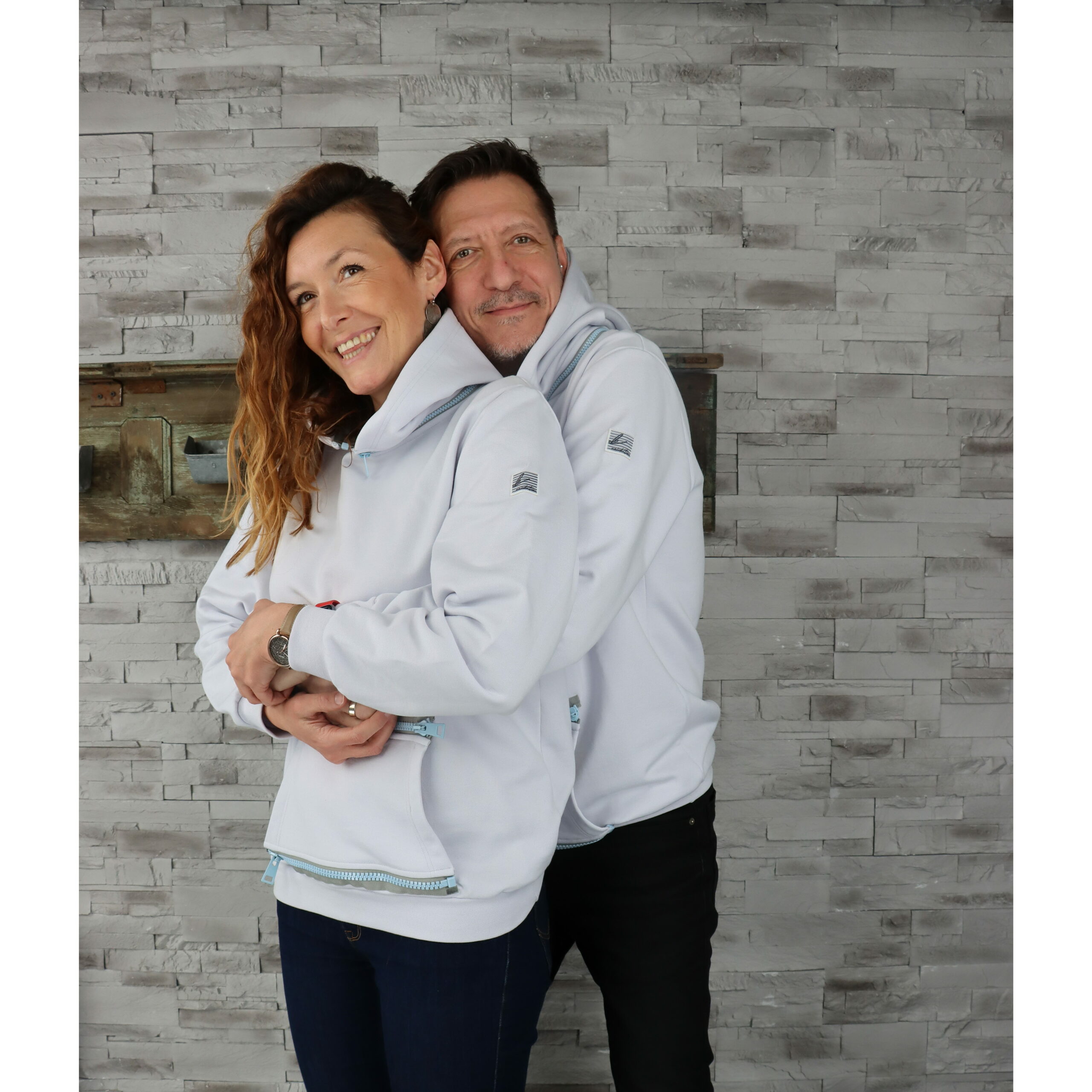 Notre sweat peut se porter seul, avec une poche, avec une capuche ou avec une poche et une capuche !